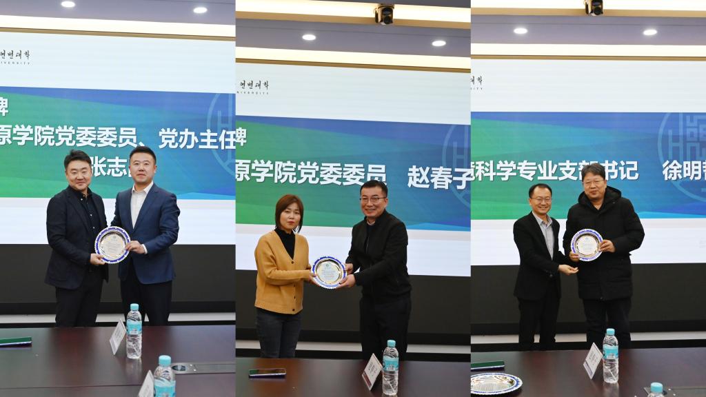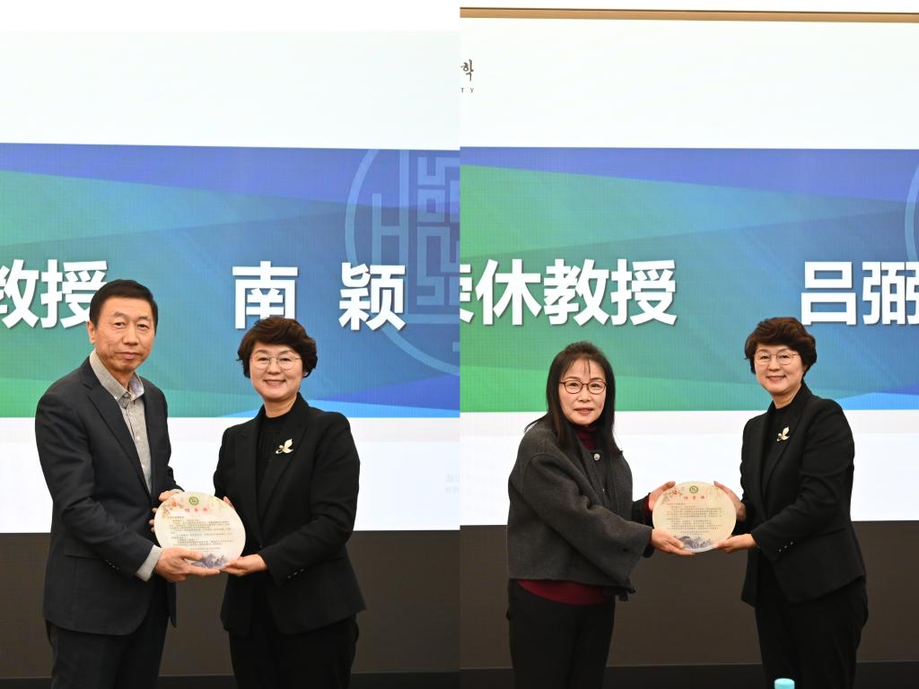 最后,举行了荣休仪式及授牌仪式。由朱卫红教授为荣休教授南颖、吕弼顺授功劳牌。许镇、朴虎森、崔金哲为卸任教师授感谢牌。