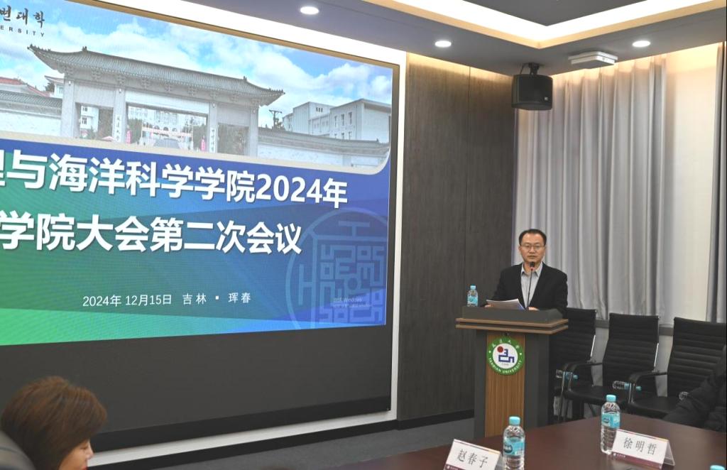 12月15日,地理与海洋科学学院在珲春校区敏行楼4楼会议室,召开2024年度学院大会第二次会议暨荣休仪式。学院班子成员及全体教职工参加会议。会议由党委书记朴虎森主持。