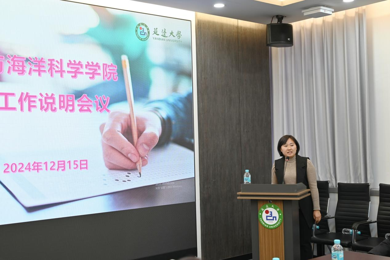 随后,学院副院长朴文华对学院教学相关工作进行了说明。着重强调了专业审核评估标准及师范类认证工作重点。